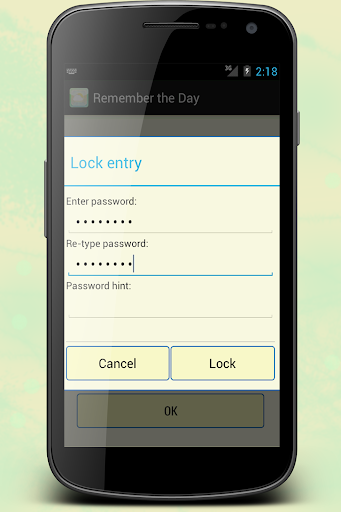 As of version 1.08, Remember the Day has implemented password protection for entries** and backing up and restoring the apps database**.