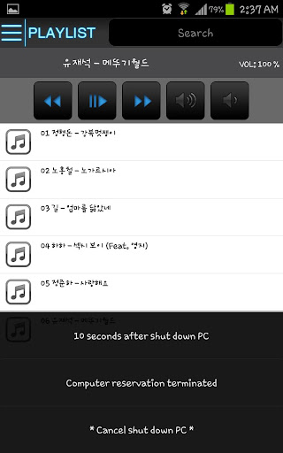 Playlist library and playlists, search, playback is possible.