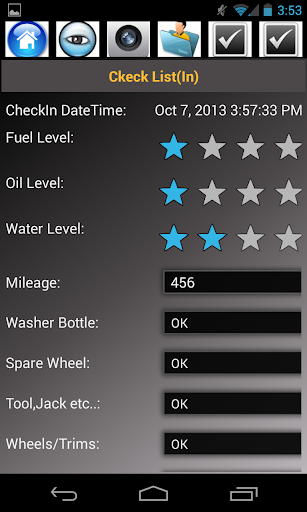 4. Fill the checklist “IN” with information (odometer reading/Fuel limit/Engine number etc..).