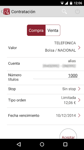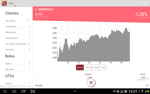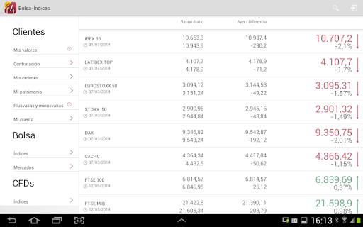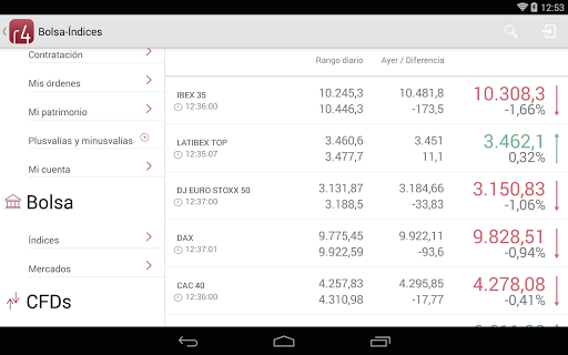 • Compra y venta de acciones, ETFs y productos derivados (CFDs, Futuros y Opciones) sobre acciones, índices, divisas y materias primas, con información en tiempo real del estado de las órdenes.