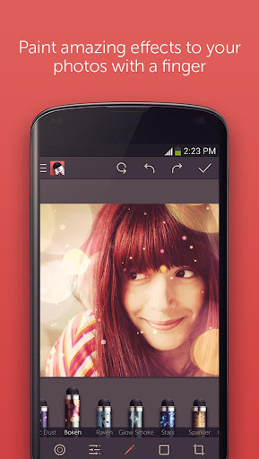 - 28+ 款手工制作特效的画笔可用手指编辑照片的任何部位。使用装饰、特效、颜色和艺术画笔可为照片进行一流润色