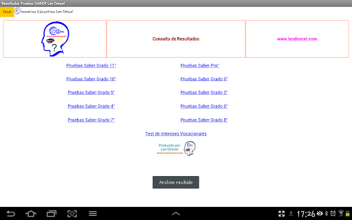 Consulta los resultados de las pruebas ICFES SABER aplicados por Asesorías Educativas Leo Doncel desde tu dispositivo Android.