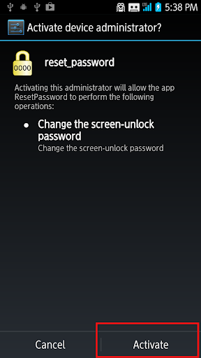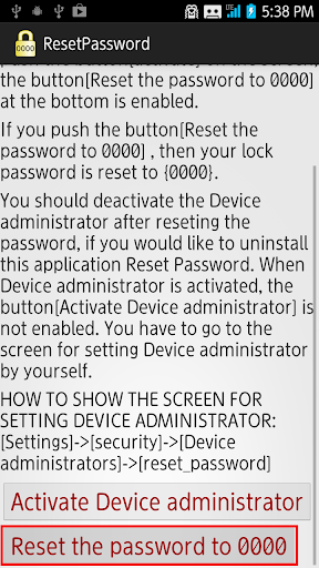 2.The screen for setting Device administrator is displayed. Push the button[activate].