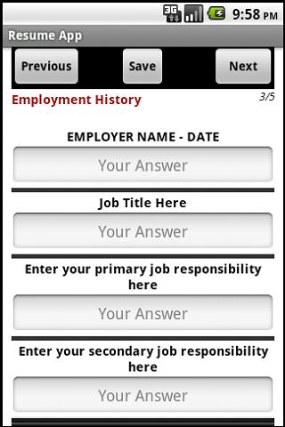 Fill in the blanks and the Resume App software will format a resume that you can use right away!