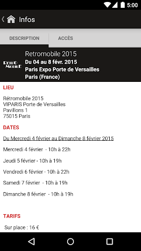 - it provides an interactive map to find your way around the Parc des Expositions, Porte de Versailles