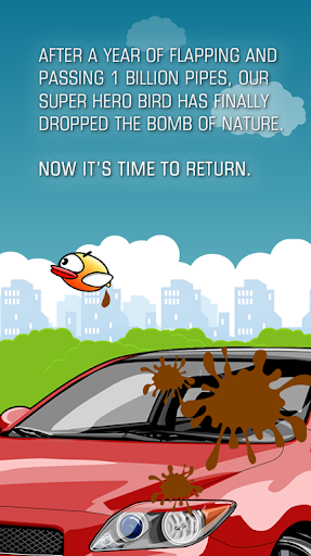 Return of Flappy is an adventure action flappy game. Our main super hero is Flappy the Bird which he return after dropping the bomb of nature in a sports car. During his return, the pipes gone wild and it's your job to save flapy on his way back home. Try to flap and void pipes as much as you can. This is a funny and enjoyable action game that you should not miss. Collect all awards and compete with different Return of Flappy game players all over the world online. This game is safe for everyone and also a good game for children. Download Return of Flappy now and enjoy the new taste of a flappy game.