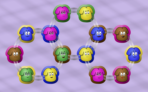 The idea in Revolutionizer is to move the little creatures to their correct places. The color of the creature needs to match the color of the background. The puzzle is solved by rotating the wheels that construct the puzzle. When all the creatures are on top of a matching background the puzzle is solved.