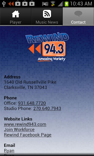 You've found the Official Rewind 94.3 Android application! You can take the Rewind with you everywhere!