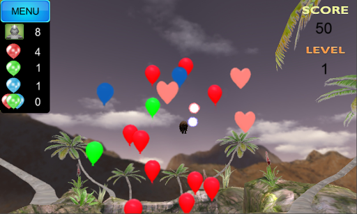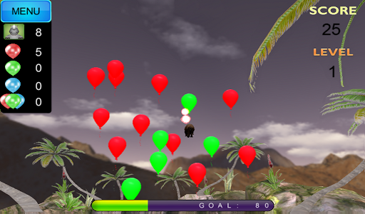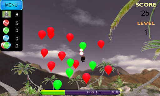 Get bonus points depending on the color of the balloons. Get extra combo points when you pop 3 different colored balloons in one run.