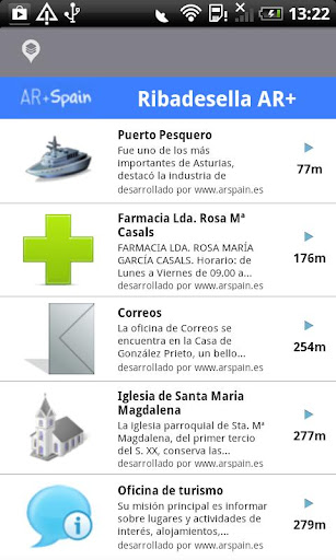 Cada punto de interés del municipio está geolocalizado para que sepas en cada momento la distancia que te separa del él y puedas guiarte mediante las opciones que te da la Realidad Aumentada.