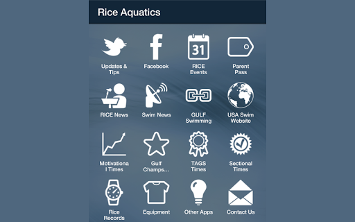 Welcome to the Rice Aquatics mobile app. This app will help you stay connected and find the information you need for USA Swimming with Rice Aquatics in Houston, Texas.