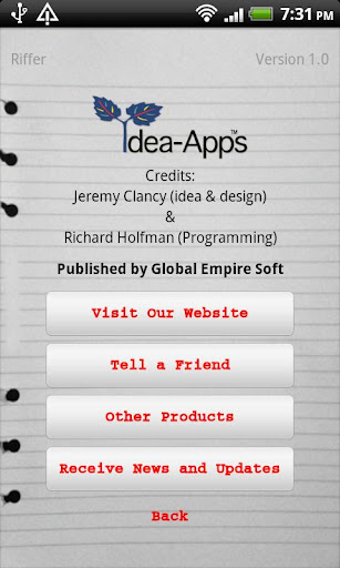The Riffer is an amazingly simple, yet incredibly rich tool for anyone trying to generate original ideas.