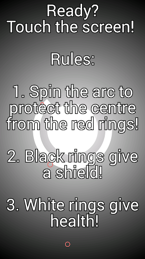 1.Spin the arc to protect the centre from the red rings!