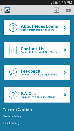 RoadLoans.com is the premier online auto lender empowering car shoppers and savers to get pre-approved for financing before they visit their dealer. With the RoadLoans app, you can get approved for a car loan right from your Android device and use our handy tools to find your perfect car, for the right price.