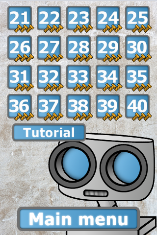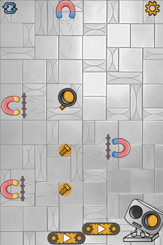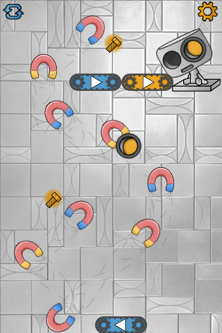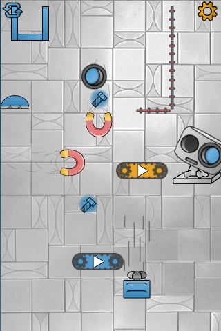 The puzzle-game is about the tiny robot named Robie, which lost it's eye. Using various devices you will return it back to Robie. This game requires logical abilities and a fast moving of your fingers. Also, for winning you have to think at least in two different color views - blue and orange. Blue elements react only with blue ones, orange react only with orange ones. Be careful, some elements may break the eye. To switch colors you just need to tap the screen of your device.