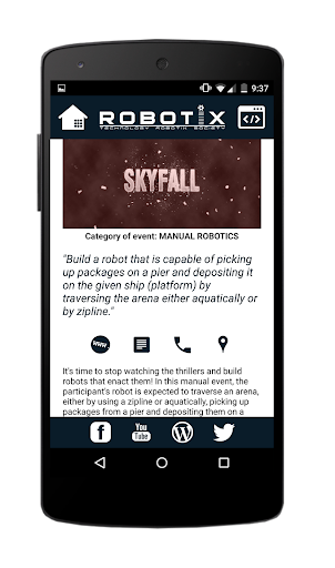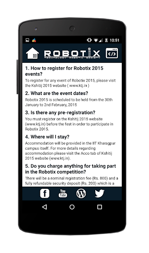 This app provides an easy-to-access insight into the exciting world of Robotix - IIT Kharagpur, one of the biggest robotics events in South-Asia witnessing more than 5000 footfalls every year. This app is a comprehensive fest-following mechanism and now, you will never be behind schedule on an event ever again. The campus is made more accessible by the included map which provides a quick overview of places of interest.