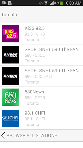 Listen to top-rated stations across the country including: KiSS 92.5, JACK FM, SONiC 102.9, 91.7 The Bounce, 98.1 CHFI, Lite 95.9, 680 News, Sportsnet Radio FAN 590.