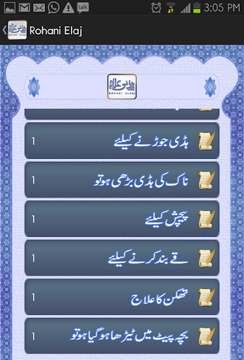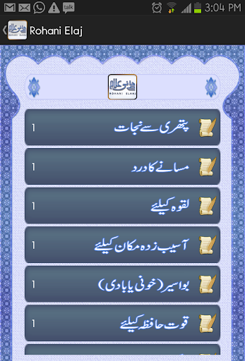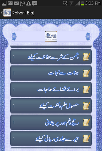 Rohani Ilaj (Spiritual Cure) is the Islamic Wazaif & Dua application developed for the user to recite Holy Quran Verses / Duaa narrated in Ahadees etc. and benefit from Quranic Verses and Names of Allah (Asma ul Husna) and His Holy Prophet Hazrat Muhammad (peace and blessings be upon Him) in daily routine.