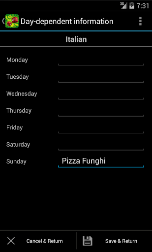 You even can define different information for each day of the week, which will allow to store todays special of your favorite Italien restaurant.