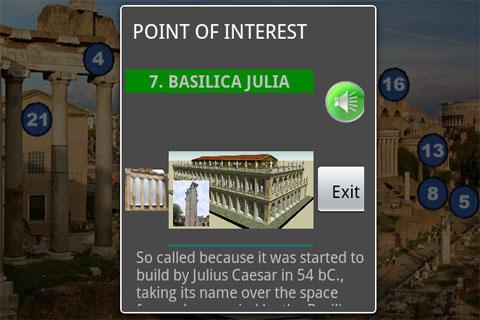 The Roman Forum in depth. Get the most of your visit to the Forum with this complete and easy to use app. This app works standalone or integrated with our Tourist Tablet-Rome free app.