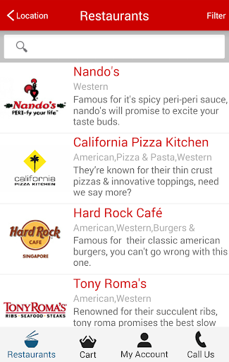 Room Service - Food Delivery app brings you the best food in Malaysia and Singapore to your home. You will have the opportunity of tasting flavours from all over the world, ranging from Mexican, Thai, Chinese, Japanese and western food or you can pick based on your favourite restaurant, may it be vegetarian, gourmet burger, sandwiches or halal.