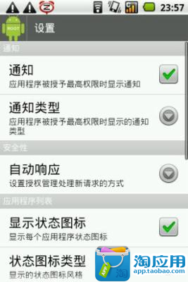 root授权管理,手机root之后必备软件之一。Root权限管理工具,保障手机安全。现在越来越多朋友的手机是Root过的固件,Root权限的管理必须重视。如果有软件要获取Root权限,此工具能及时提醒用户,并对Root权限的分配和使用进行统一管理。