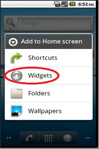 這是一個小部件,然後,一旦裝在手機屏幕上保持和從菜單中選擇