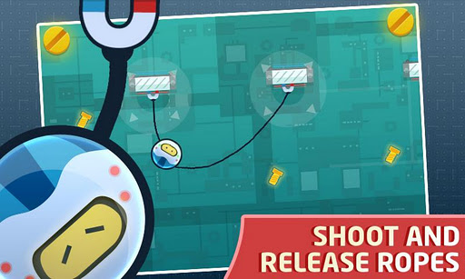 The game couldn’t be simpler: shoot, release and cut the rope while you swing our top little droid hero like a spider man.