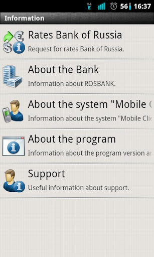 The application is intended to work with the Rosbank’s "Mobile Client-Bank" system.