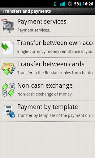 • perform intra- and inter-bank transfers in rubles using templates;