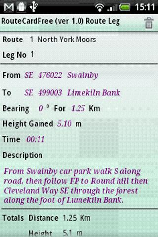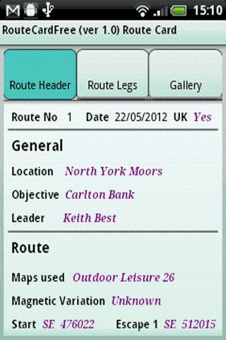 Route Card can be used to plan and keep a record of your hiking routes on your phone. Route Card also stores other useful data: