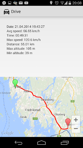 When the stop button is applied, the activity will be saved with data like: time, distance, average speed.