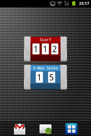 The Row Counter Widget is an easy to use tool for Knitting and Crocheting. Just give it an name, choose your favorite color and style, put it on your homescreen and start counting by touching it.