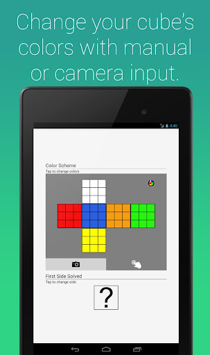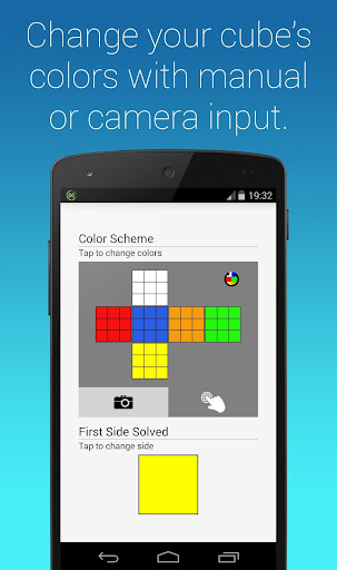 You can use your phone's camera to take pictures of your cube, or just simply put the colors in manually and this app will solve your cube for you. You just need to follow the instructions.