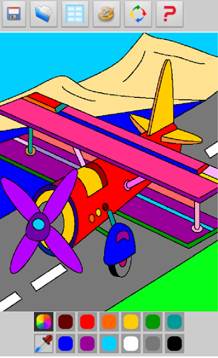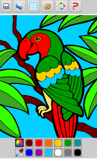 FloodFill Mode -> You can select a drawing from built-in categories, fill the drawing with a variety of colors, zoom in and out the drawing, save it in the library.