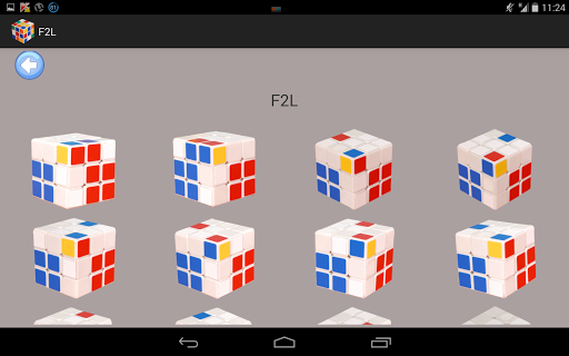 Easy and Quick Access to Rubik's Cube algorithms for standard 3x3 cubes. The app has algorithms including the Fridrich method for the for the first two layers of a 3x3 cube, orientation and permutation of the last layer of a 3x3 cube. This app is perfect for those who knows what F2L , OLL and PLL means. This app is especially made for tablets.