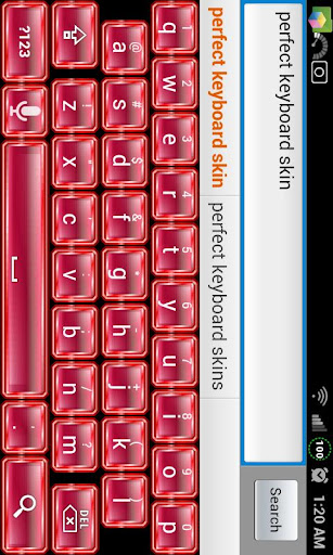 The Ruby Red Keyboard Skin is designed to show off OLED displays, but also complements standard LCD displays. The keyboard images are true HD high resolution images. On a standard phone with an 800x600 display or even a 1024x768 display the keyboard keys appear super crisp, sharp and detailed. When the keys are pressed they glow as if a neon light was inside the ruby keys. The shift key also glows when in the shift lock mode.