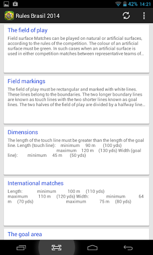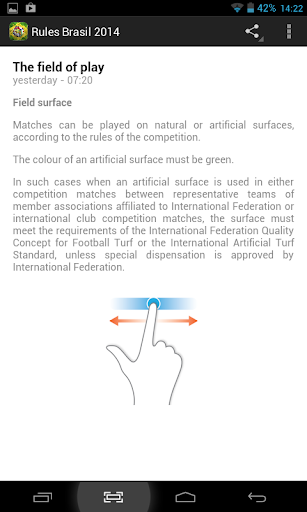 Prepare yourself for World Cup 2014 in Brazil with this excellent, easy to use application that helps you learn about all the rules of football in English; regardless of the country it is played in, the rules are the same.