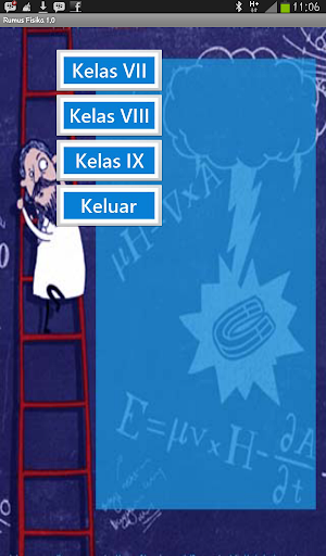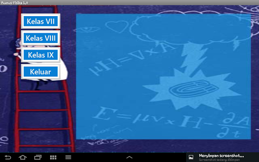 Aplikasi rumus-rumus fisika berbasis android untuk siswa smp ini berisi rumus-rumus fisika kelas VII, kelas VIII, dan kelas IX. Aplikasi ini berisi rumus-rumus fisika, contoh penyelesaian soal beserta perhitungannya. Aplikasi ini dikhususkan untuk pengguna smartphone yang memiliki sistem operasi Android. Pada aplikasi ini pengguna dapat mencari rumus-rumus fisika di mulai dari kelas VII, kelas VIII, dan kelas IX. Dalam aplikasi ini tidak hanya menampilkan rumus-rumus fisika saja melainkan terdapat contoh penyelesaian soal dan perhitungannya.