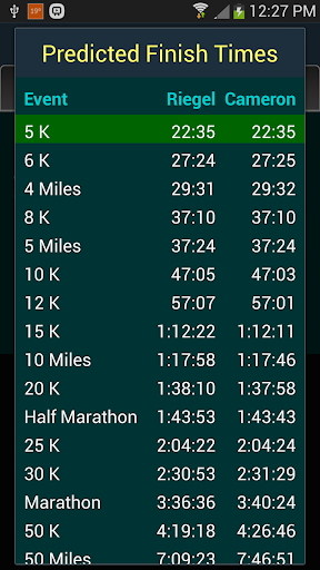 There's also a tool for predicting your performance at other race distances using two popular formulas. Want to know how your 5K or 10K time could translate to the half or full marathon? Predictions can be viewed by either finish time or pace. You can even enter a custom distance by choosing "Custom Distance" at the bottom of the Distance drop-down.