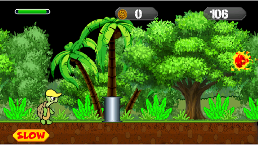 Swipe up to jump over the obstacles and Swipe down to drop Turtle quickly on track to avoid fire balls.In this game there is only one way to keep Turtle alive is to get water bottle , to boost up Turtle energy level for obstacles.Coins will help the user to unlock the next character.User just need to get more coins within limited time of life bar, if one coin missed second coin will come after sometime .Every coin is important to collect.