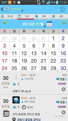 확인하실 수 있습니다. 또한 게시글 및 일정을 바로 작성할 수도 있습니다.