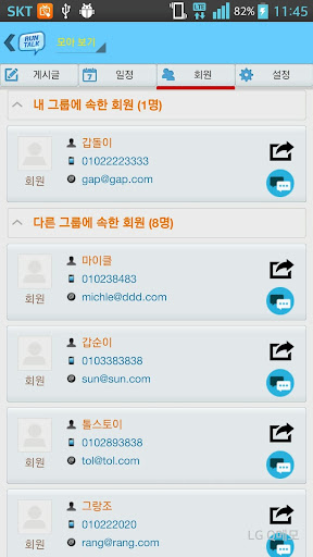 2. 게시글 작성해 그룹원들에게 바로 바로 알림 메시지를 보낼 수 있습니다.