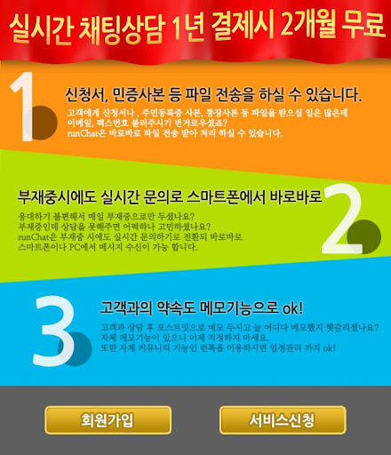 * 회사사이트에서 고객과 실시간 채팅을 가능하게 함으로써 분주한 전화상의 문의를 원활하게 진행할 수 있습니다.