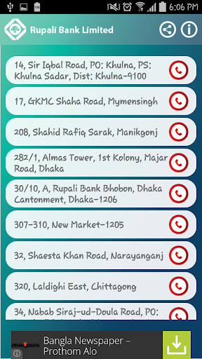 Rupali Bank Limited was incorporated on 13th December 1986 and since then it has been operating as one of the finest state-owned commercial bank. The application provides information about the bank, branches and ATM booth locations. Detail on the services offered by them, notice boards, latest news, headoffice address with GIS location are also available.