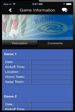Description: The official app for players, coaches and parents participating in Rush Fest youth soccer event, which is held in Denver, Colorado each summer. Features maps to the fields, schedules, scores and standings, as well as information on places to stay, places to eat and fun things to do in the area.