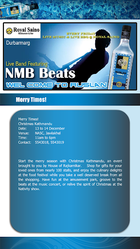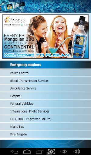 Other useful informations such as emergency numbers, party managers numbers, QFX movies playing etc. will also be displayed, so that the app user gets relevant and updated information of Nepal.