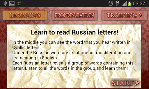 Even if you don’t intend to study the Russian language, isn’t it quite appealing to start reading Russian words after only five-minute practice? And after thirty minutes of playing this exciting game you can make a bet with a friend that you know 100 Russian words (the game is based on 500 words)!