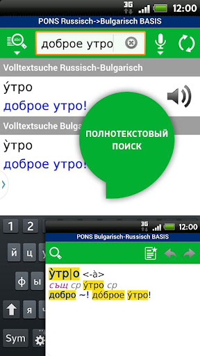 • Опцията за търсене в целия текст Ви позволява лесно да намирате примери за употреба на думите – резултатите се появяват едновременно и на двата езика.