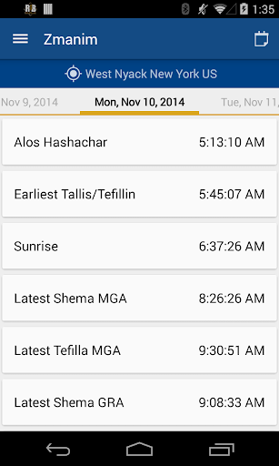 Take your weekday siddur with you with this feature-packed Jewish prayer book. You'll get Ashkenaz, Sefard, Sefardi Mizrachi and Nusach Ari (Chabad*) versions of davening, including weekday Shacharis, Mincha, Maariv, standard Brachos and more. Real time Zmanim will give you the prayer times for each day based on your location determined with the device's GPS. A Minyanim database will help you find nearest shul. A Luach or Jewish Calendar will aid you in your prayer services.